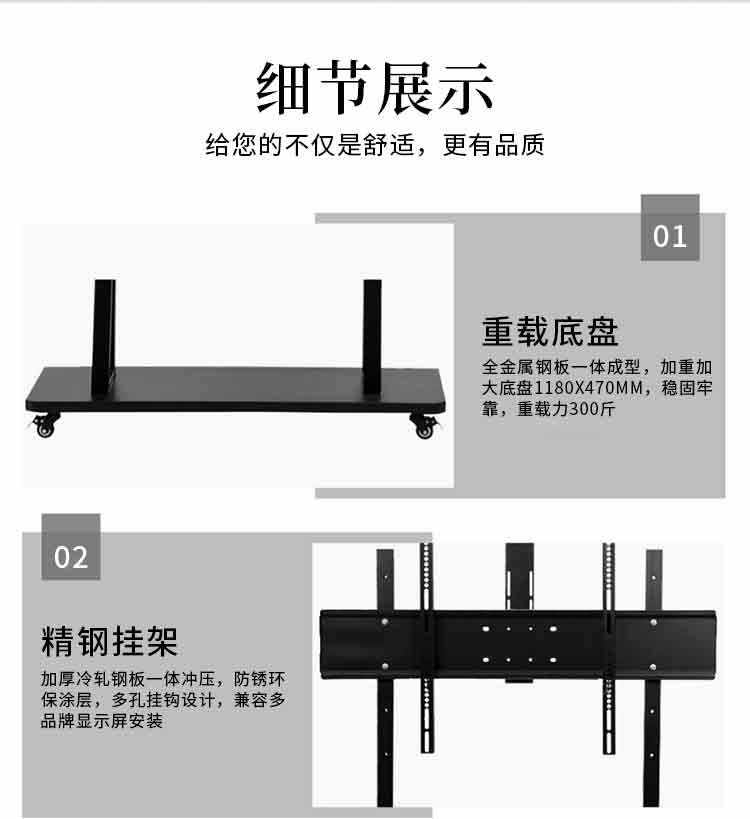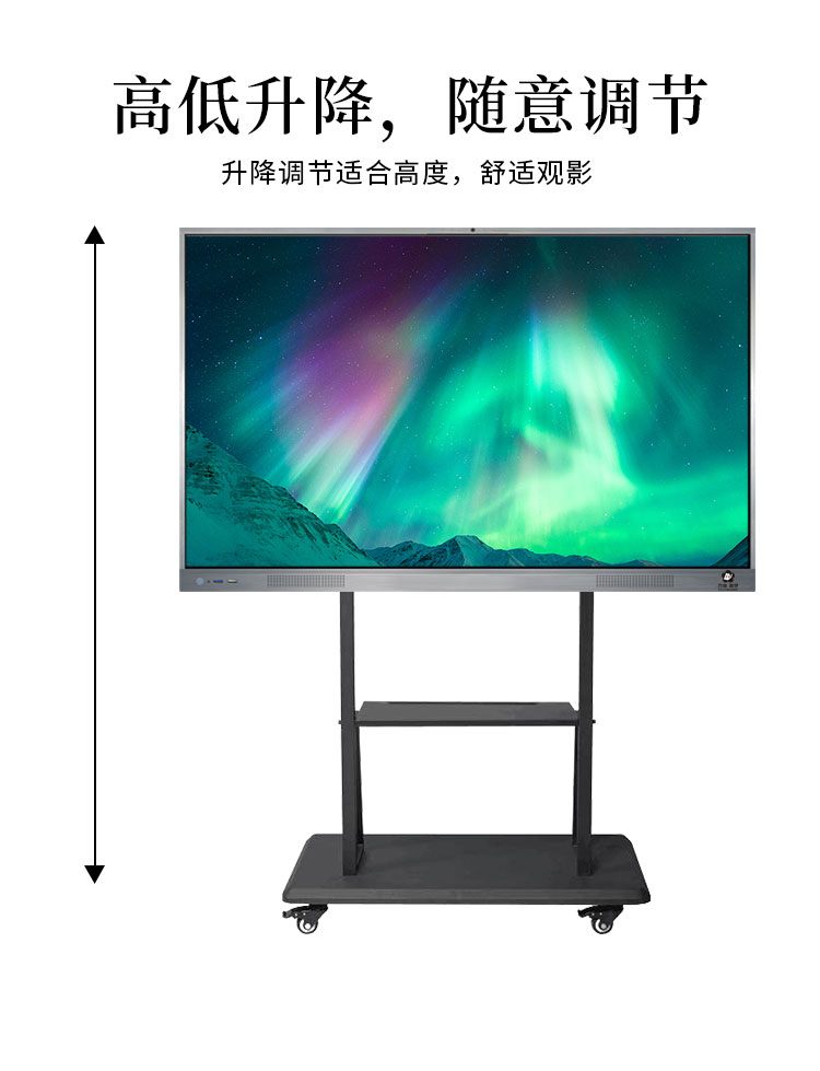 黑色教學(xué)會(huì)議移動(dòng)支架專用液晶電視、廣告機(jī)、觸控一體機(jī)、電子白板、教學(xué)會(huì)議等,高低升降,隨意調(diào)節(jié)。