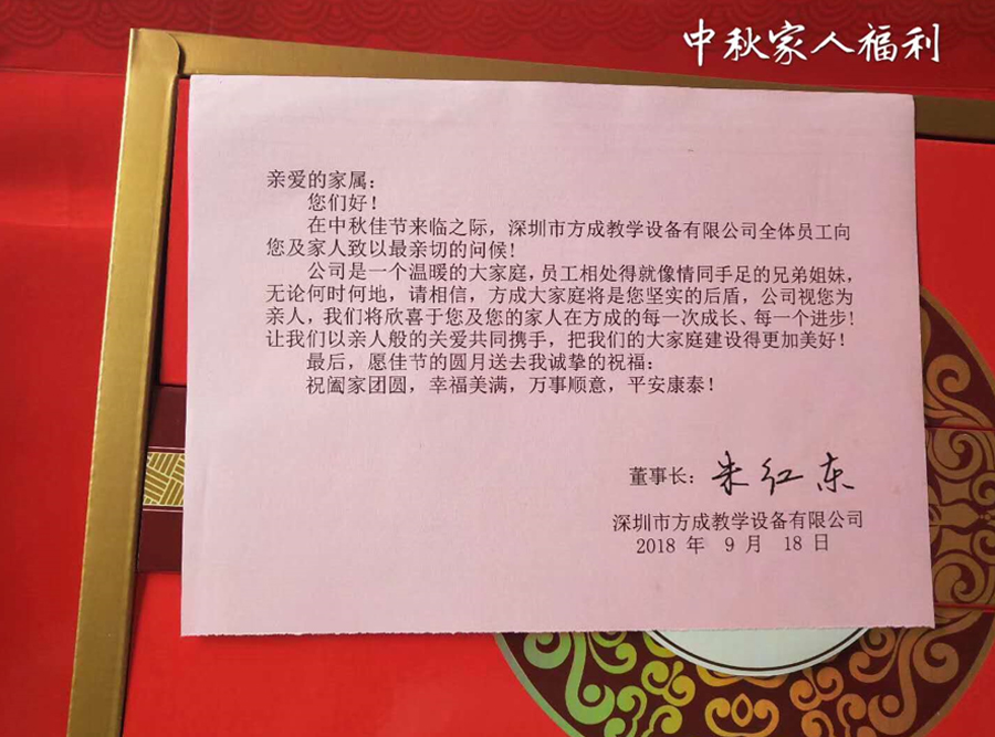 借此中秋佳節之際,方成教學為您寄出了節日的慰問禮品,并免費贈送設備管理系統一年,感謝我們一路走來,都是在您的支持和信任下
