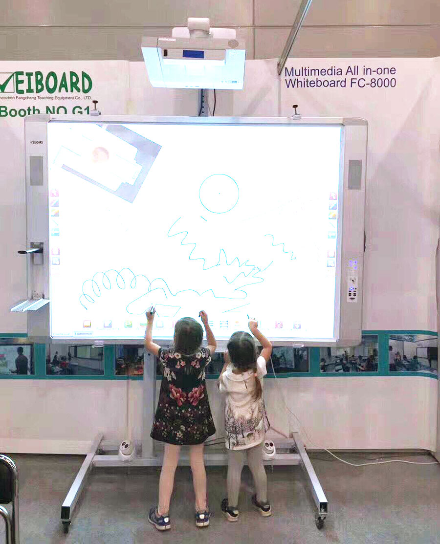 此次展會(huì)上,方成教學(xué)的一體化電子白板FC-8000非常引人注目,它集成了電子白板,OPS電腦,音箱,展臺(tái)和中控系統(tǒng)于一體,配合強(qiáng)大的白板軟件和教學(xué)管理軟件,能夠?qū)崿F(xiàn)網(wǎng)絡(luò)控制,視頻錄播,互動(dòng)傳屏,校園廣播等功能,讓前來(lái)體驗(yàn)的眾多俄羅斯學(xué)校老師和學(xué)生都大開(kāi)眼界,稱贊不已。