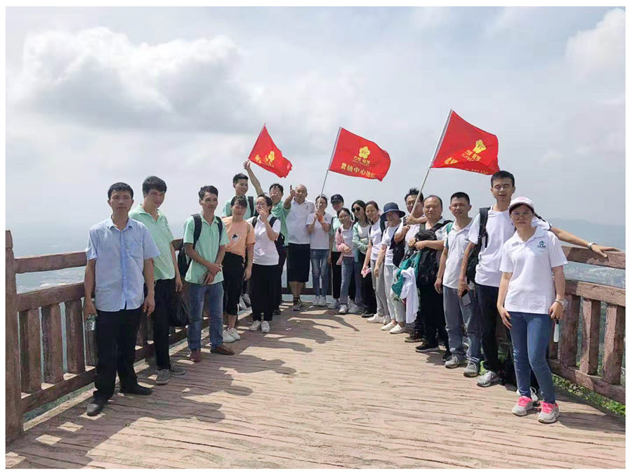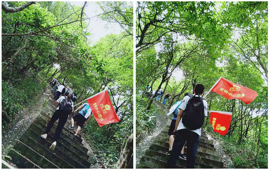 大家跟隨著團隊旗幟,整齊有序的前行。本次活動所有參與人員都登上了山頂,體現(xiàn)了大家的運動能力較強。